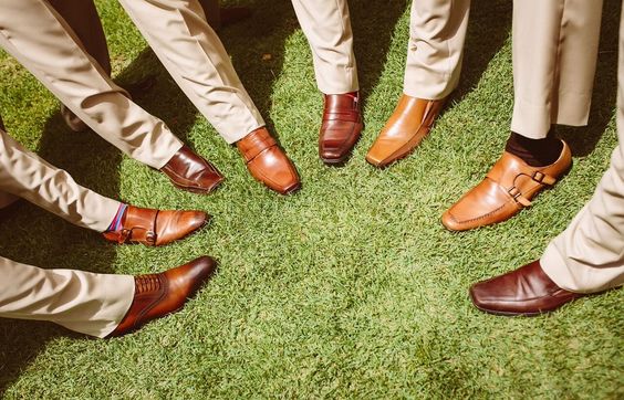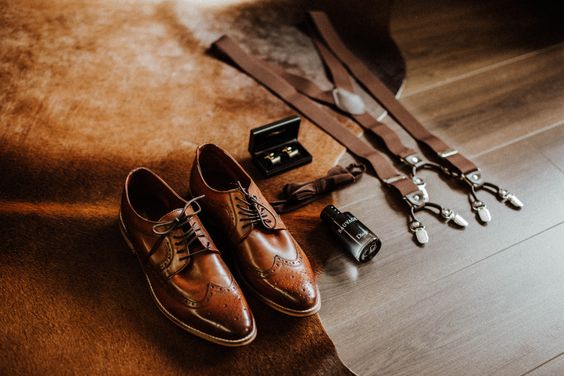 Shoes can make or break your overall look; groomsmen must have a pair of dress shoes in their wardrobe which goes well with suits or even long sleeves and suspenders. Black or brown brogue is a staple piece for fancier gathering or events.