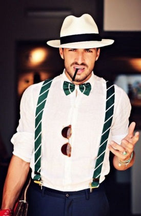 However, done right, green adds a touch of interest and zest to whatever you have on. Here are some failsafe ways to rock suspenders in green. Should you suddenly find that your undeniable fashion skill with being able to pull off green suspenders incites envy in your fashionisto pals, well, consider yourself warned.