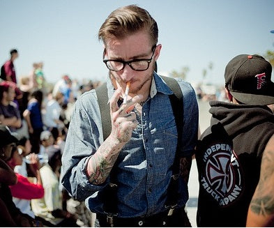 Despite hipstering (painfully) hard, this guy definitely got the memo when it came to knowing how to rock a suspender. The combination of the denim shirt with fabric suspender is the epitome of casual cool. The pompadour and Buddy Holly nerd-glasses, too. The Buddy Holly frames actually have an interesting backstory. It wasn’t the singer who chose them, but his hometown optometrist, J. Davis Armistead. He was inspired by the popular 1950s TV sitcom The Phil Silvers Show, and its main character, Master Sergeant Ernest G. Bilko, who accentuated the everyman-persona aspect of the role with heavy black frames. "The next morning I got up,” notes Armistead, “and said, ‘This is what Buddy Holly needs.’” He couldn’t find what he wanted this side of the border, but knew that style was popular in Mexico. So, while on vacation, he picked up the now-iconic Mexican Medicaid frames.