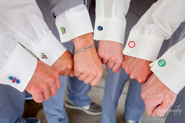 We’ve all seen the super hero shirts under the groomsmen’s button downs, this is a new twist. Cufflinks are fantastic way to let your groomsmen’s personalities shine.