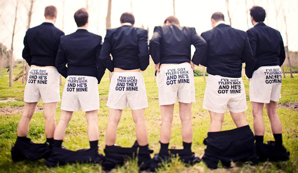 For the really close knit brotherhood of groomsmen, or those who share the same naughty humor, why not rock matching boxer shorts? We love the personalized message on these!