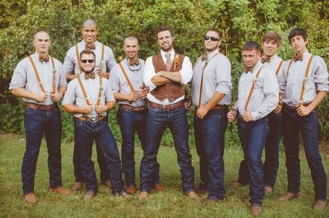 Casual Wedding - Would rather be comfortable on your big day? We get it! Groomsmen in denim and suspenders can give a cohesive look to your wedding party, while still being comfortable to wear all day.