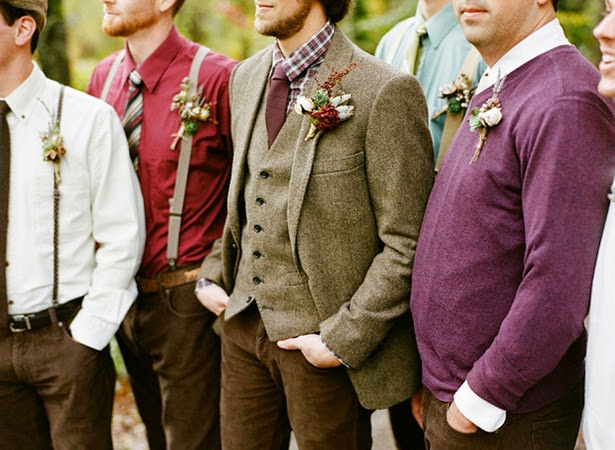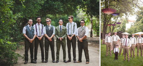 Classic Wedding - Whether you’re a traditionalist or not, there is nothing quite like seeing men dressed to the nines in a full suit and tie. Even if you want to mix it up a bit with some colored shirts and suspenders, you’ll still have a timeless look.