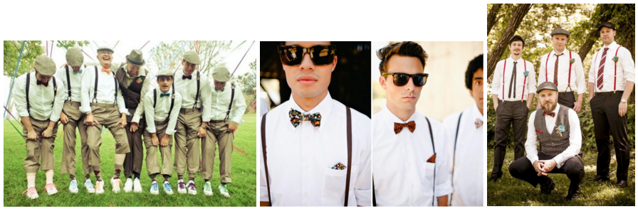 Hipster Wedding - We can’t get enough of the fresh, hip trends popping up in weddings all over the place. Fun colored bow ties, dapper hats, and loads of funky braces.