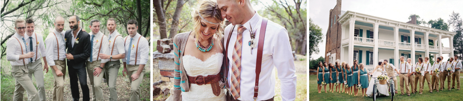 Rustic Wedding - your groomsmen will love the simple attire that a rustic wedding calls for. We love the use of leather suspenders with this theme.