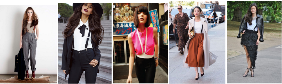 Classic - channel yesteryear with the timeless looks featured below, a pair of black wide leg slacks and suspenders are just as great at work as the are for a night out on the town.