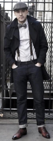 If you are seeking to get a more modern and aesthetic look, this dressing is for you. Just pick dark coloured jeans such as black, indigo, grey or navy blue. You can also pick any dark colour from your denim and pair it with your skinny suspenders. The plus in this dressing is the room for the shirt selection. You can go for both light or dark coloured shirts. Lighter shirts with dark jeans provide a strong contrast and boost the personality.