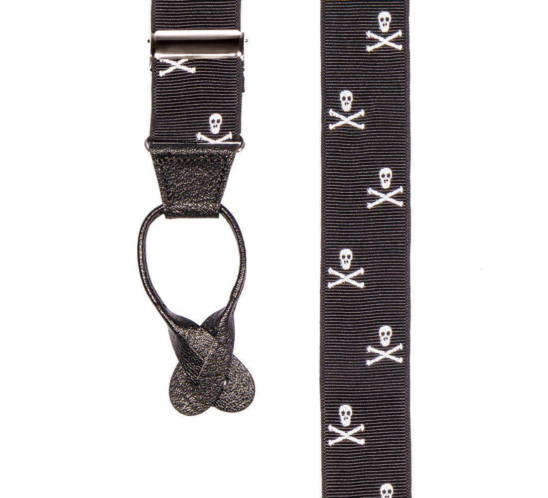 If you're looking for a twist on a classic style, these stylish black suspenders are perfect for you. They feature a funky skull-and-crossbone motif that's subtle yet contemporary, and which lends itself to both formal wear and more casual ensembles for a dark-and-dangerous look.