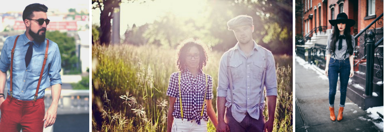 Denim worn with denim long ago headed south and, along the way, acquired a reputation for impossible cool. Variations on a single shade from head to toe always look sophisticated, especially if the denim pieces you choose are on the darker end of the color spectrum. For the coolest vibe, opt for a leather suspender. And don’t be afraid to play with the width - try some suspenders that are skinny to see how you like them, and then compare with ones that are wider. Keep experimenting until you find your happy place, suspender-wise. Try: https://www.jjsuspenders.